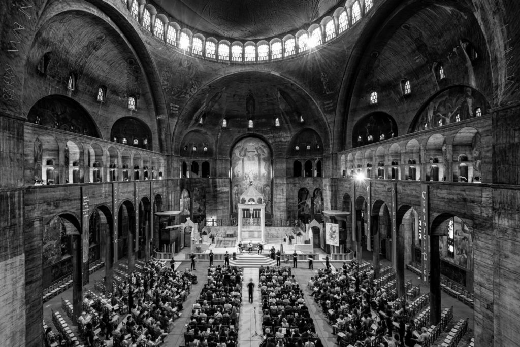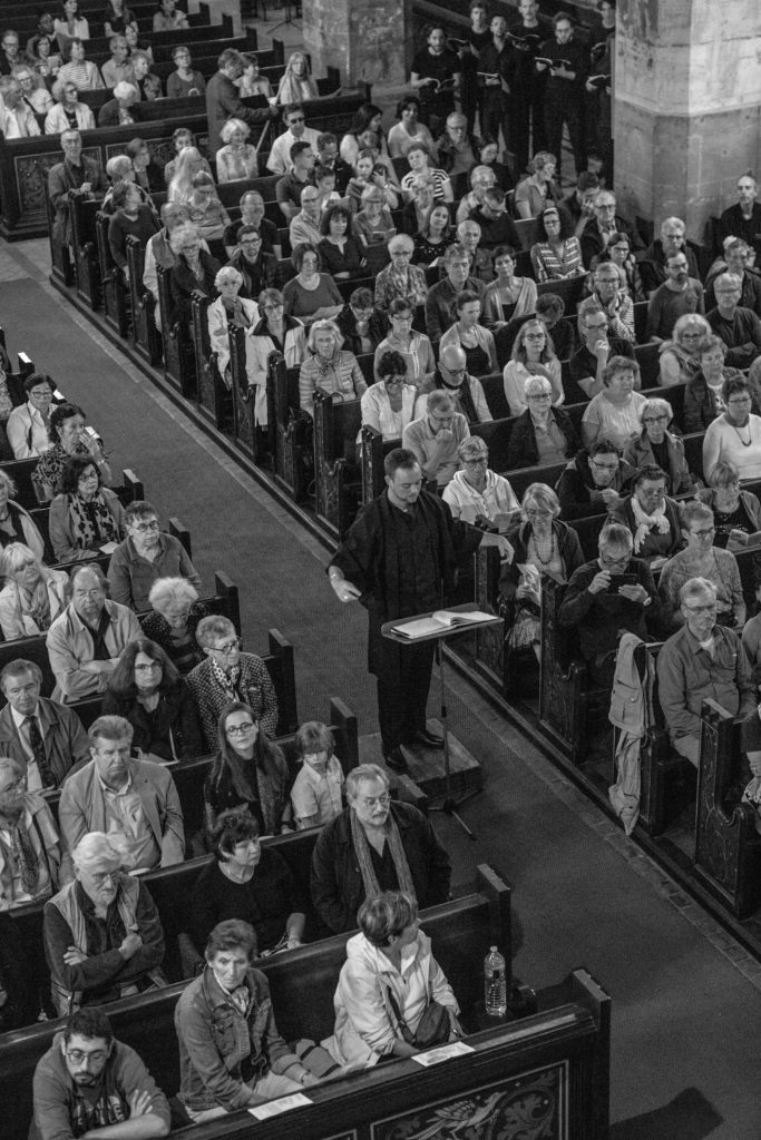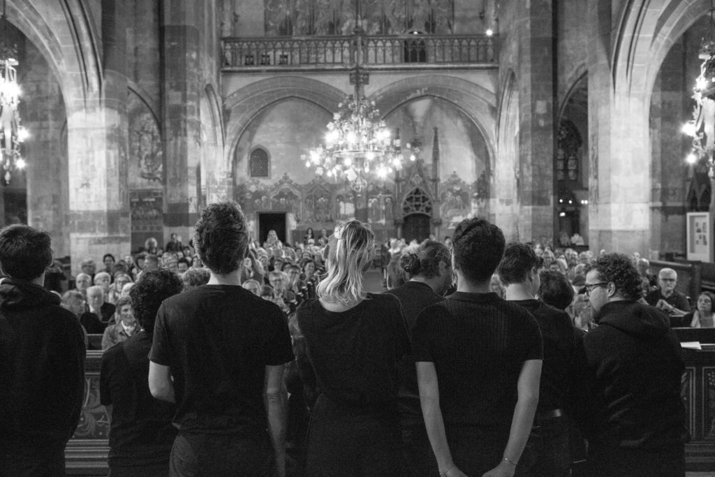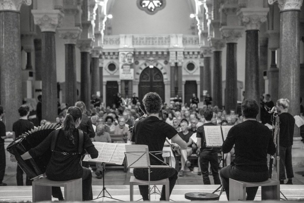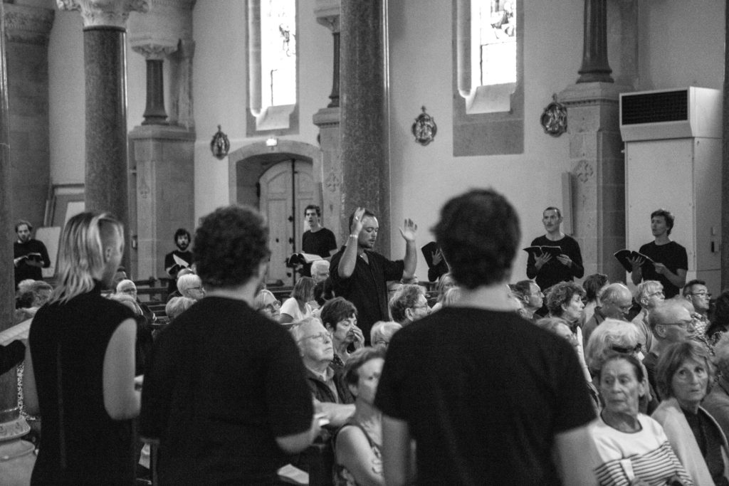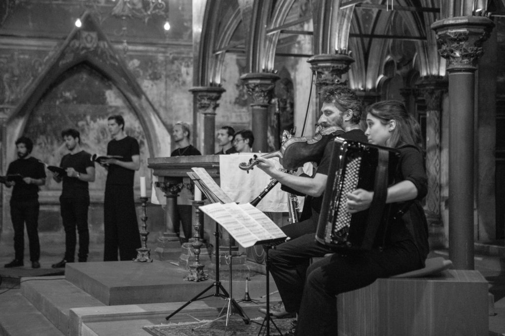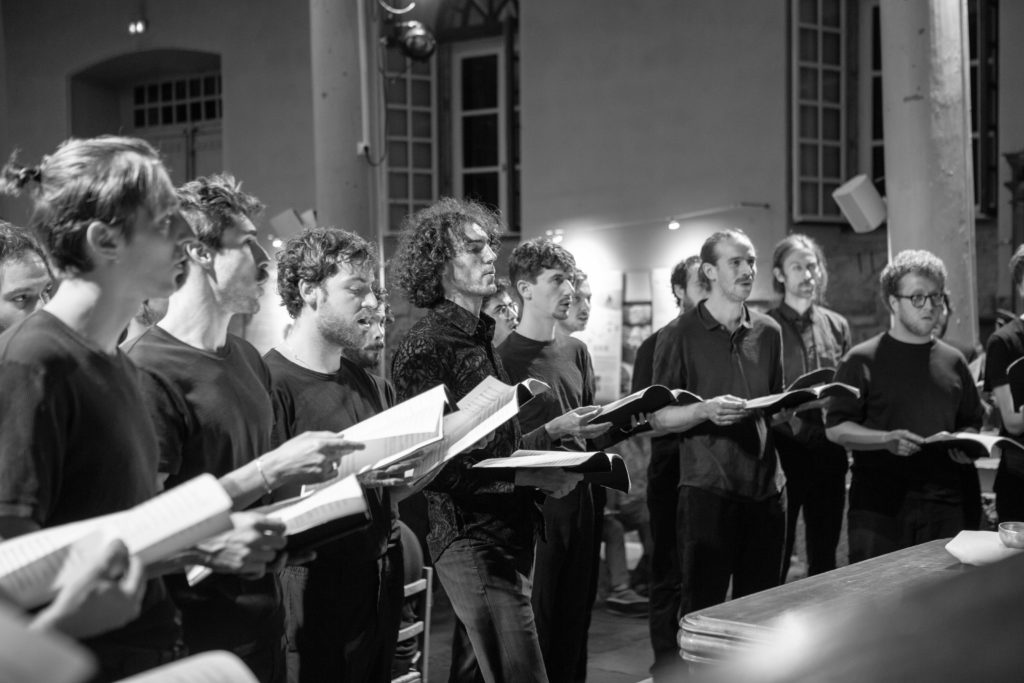 Composée spécifiquement pour le Chœur d’Hommes de La Villette et portée également par un récitant et trois instrumentistes, l’œuvre est conçue pour s’adapter à l’acoustique et à l’espace architectural des lieux accueillant les représentations. Une spatialisation des choristes et des musiciens permet de développer autant d’occasions particulières que de situations de concerts, tout en se faisant l’écho des déplacements de population, souvent contraints, forcés – rarement souhaités. Dans l’espoir qu’une parole ancienne puisse éclairer notre chemin, chacun est invité à chercher des « traces » du Livre de l’Exode dans le parcours proposé par le livret et jalonné de poèmes ou de fragments poétiques d’auteurs qui ont traversé les tourments du XXème siècle.